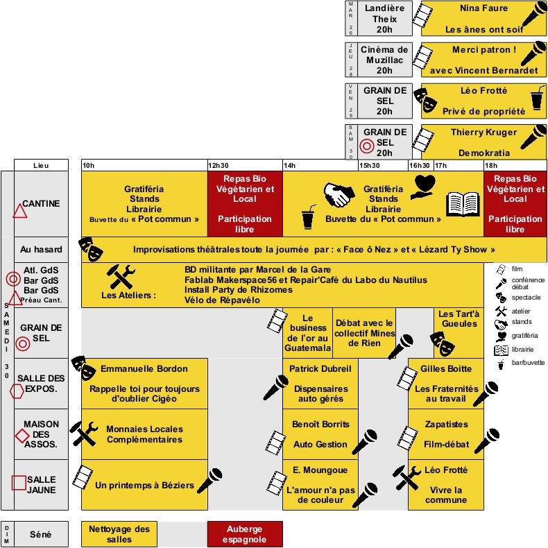 Une zone de gratuité ou gratiféria est un lieu où on peut apporter des objets, en prendre, en utiliser, en donner, le tout en bon état et tout ça sans contre partie… http://netoos.org/selgolfe/ http://incroyablescomestiblesvannes.wordpress.com