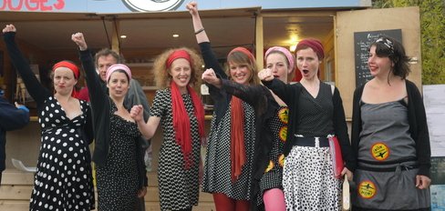 Chorale à petits pois gratinée de 20 gambettes. Mélangez humour, chansons engagées, le tout à 180 degrés, ressortez-en 10 nanas vivement agitées ! Ces dix tartes pleines d'entrain ont constitué leur chorale amatrice sur le Pays Vannetais il y a deux ans. Elles chantent en soutien à des initiatives citoyennes locales qui leur tiennent à cœur.