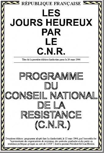 S’il a été de bon ton, au cours de ces dernières décennies, de brocarder le débat idéologique au nom d’une prétendue destinée commune, on se rend bien compte qu’à l’image des passagers du Titanic, tous ceux qui sont sur le même bâteau ne sont pas traités de la même manière. Il faut accepter cette réalité si on veut apprécier à sa juste valeur le programme du Conseil National de la Résistance. Il s’agissait, alors, non pas de traiter tous les passagers de la même manière, mais carrément de changer de navire. Il y avait une volonté de changer la nature du système qui avait prévalu avant 1940. Au point d’en créer un autre.